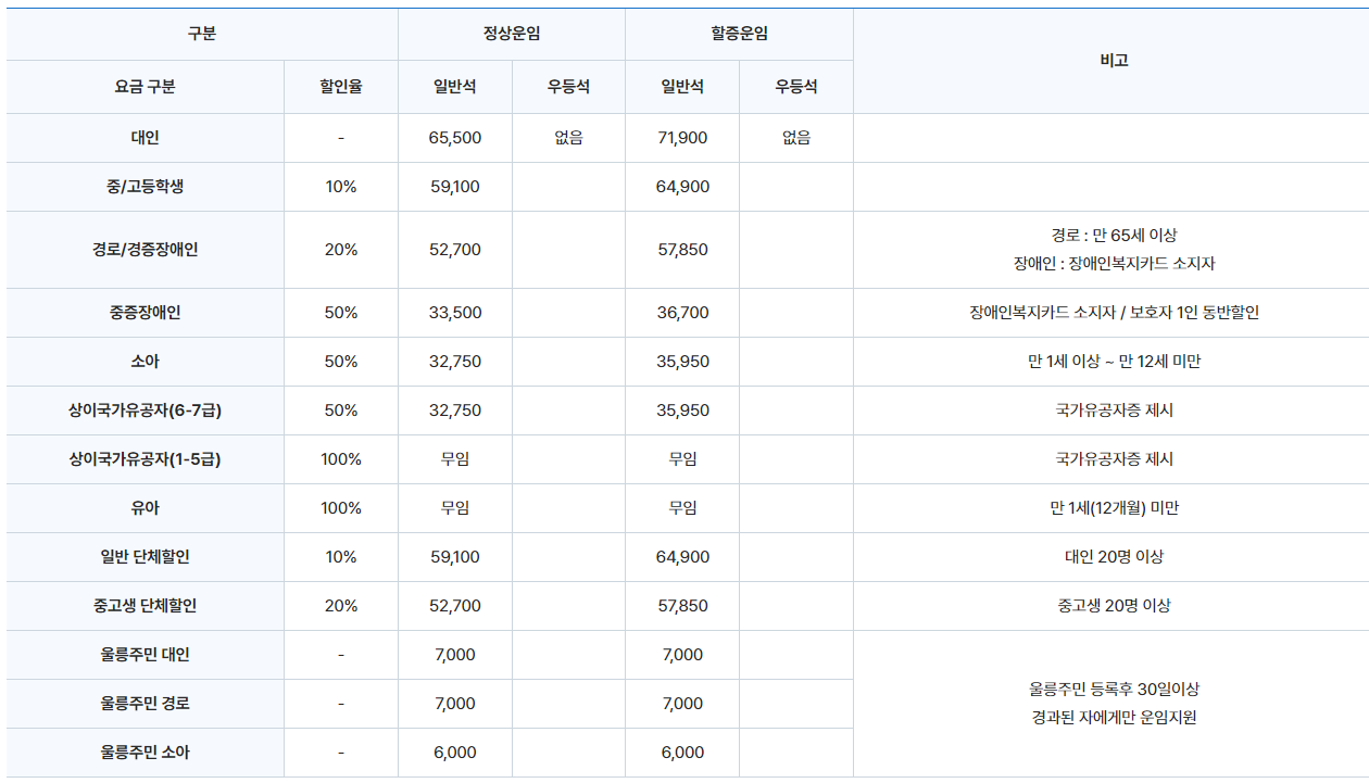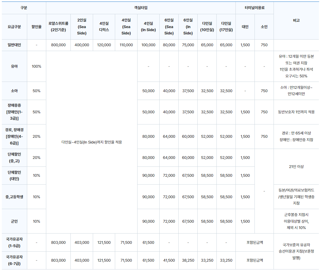 ✅ 선사 (할인)요금표는 선사 홈페이지를 참조하시기 바랍니다.