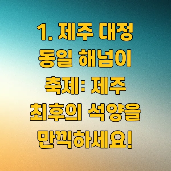 1. 제주 대정 동일 해넘이 축제: 제주 최후의 석양을 만끽하세요!