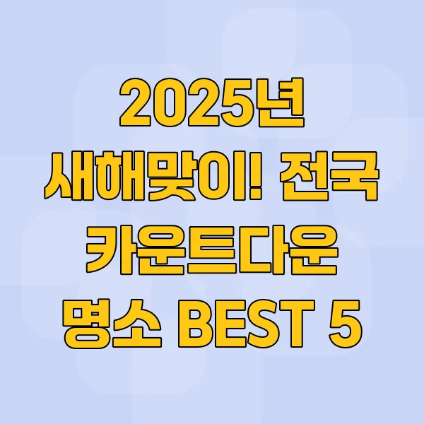 서울의 웅장한 보신각 타종행사부터 부산 광안리의 황홀한 드론쇼, 제주 성산의 벅찬 일출까지! 전국 방방곡곡, 취향 저격 카운트다운 명소 BEST 5를 엄선했어요.