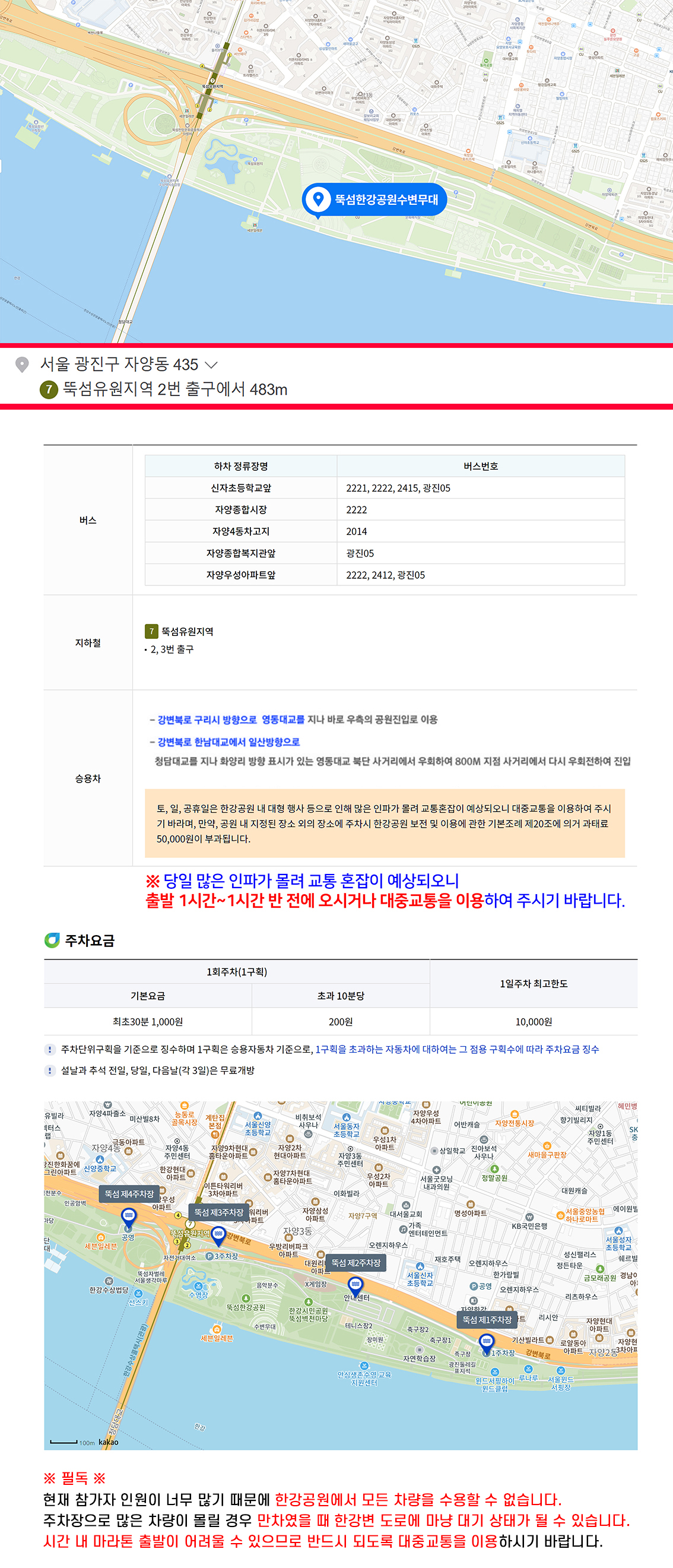 - 출발 및 도착 지점은 뚝섬한강공원 수변무대