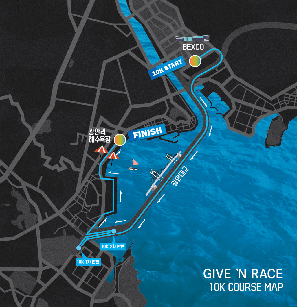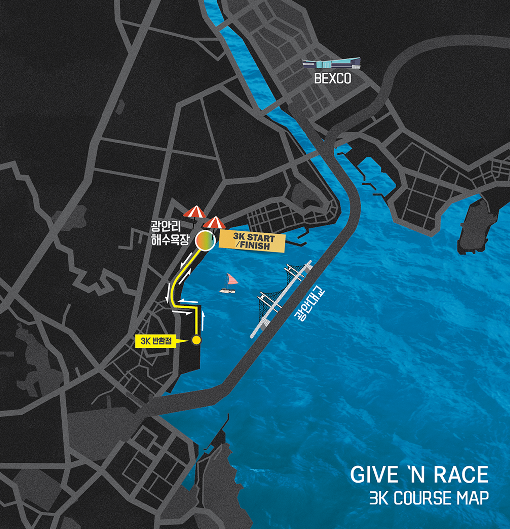 광안리 해수욕장(3K 출발 지점, 10K & 8K & 3K 도착 지점)