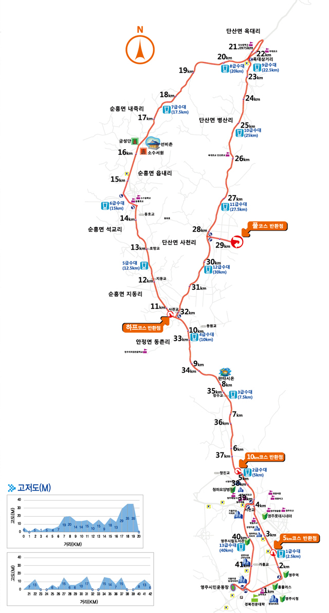 영주 소백산 마라톤대회는 풀코스 부터 5km 코스까지 총 4가지 코스로 대회가 열립니다.
