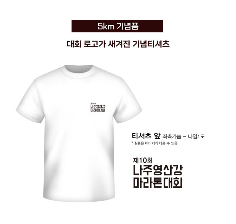 2. 5km : 기념품(면티셔츠) , 대회안내서 1부, 배번호, 완주메달, 보험가입